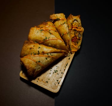 Stuffed with juicy chicken, bell peppers, corn, and a touch of cheese—wrapped in a crispy golden shell.